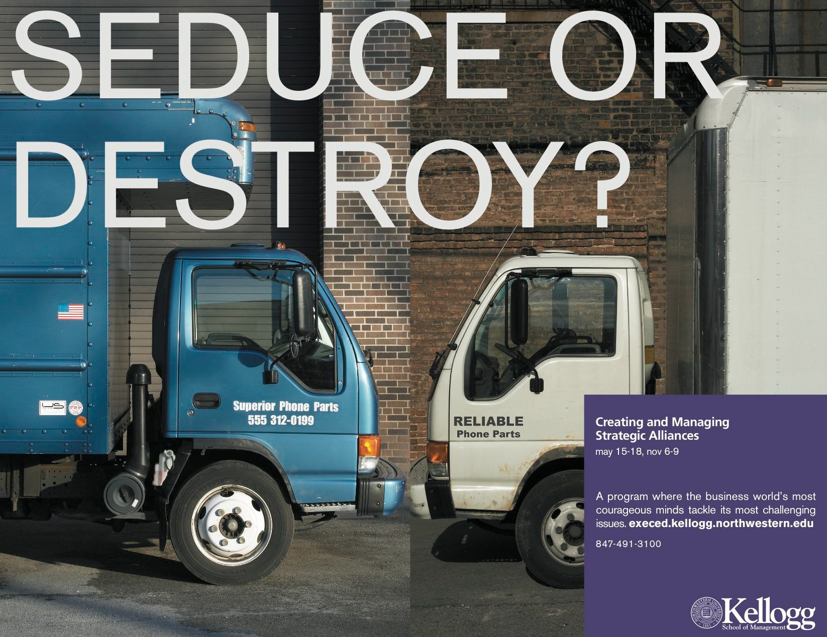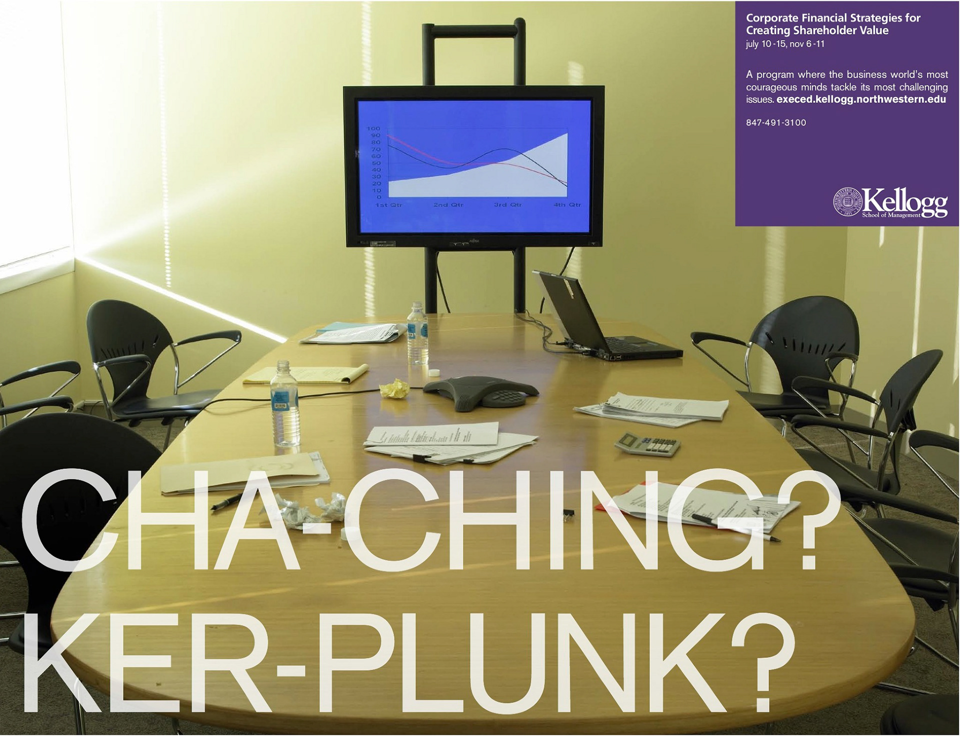 Complex business challenges break down into graphic tension in this print campaign for the Kellogg School of Business.